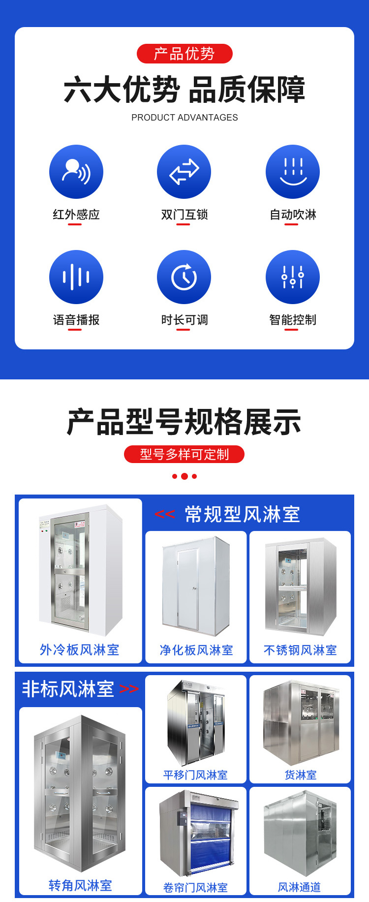 描述:外冷板风淋室通过高速气流冲击,清洁人员或物品表面的微粒和颗粒,维持其进入洁净区域前的洁净状态。