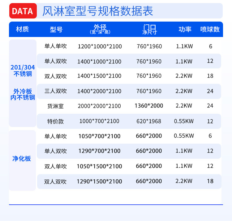 描述:洁净板又称净化板,是一种由彩涂板、不锈钢、铝合金板等材质作为面材的复合板。净化板风淋室拥有材质上的优势轻便简洁,适用于各种净化车间使用